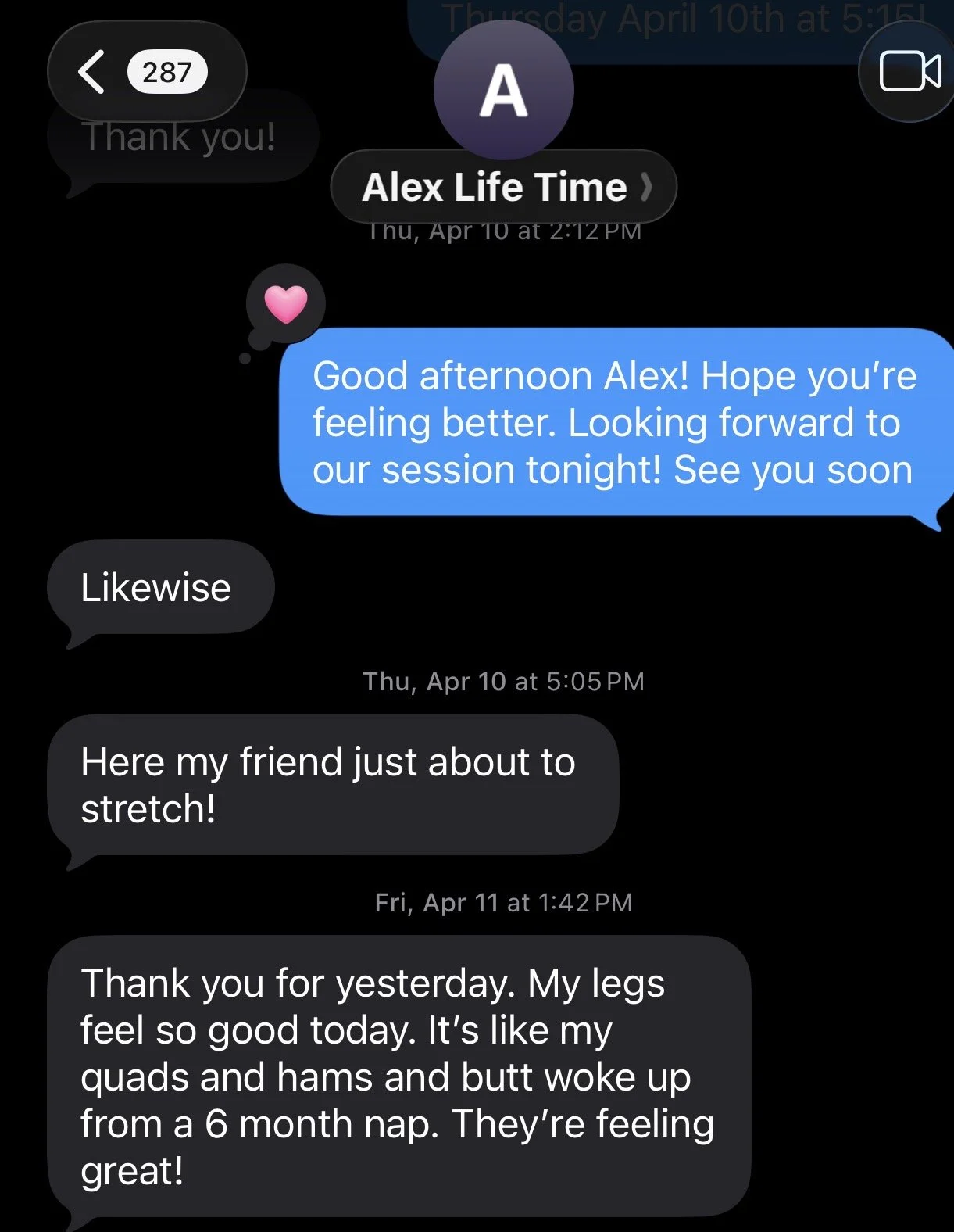 “Thank you for yesterday. My legs feel so good today. It’s like my quads, hamstrings and glutes woke up from a 6 month nap. They’re feeling great!”